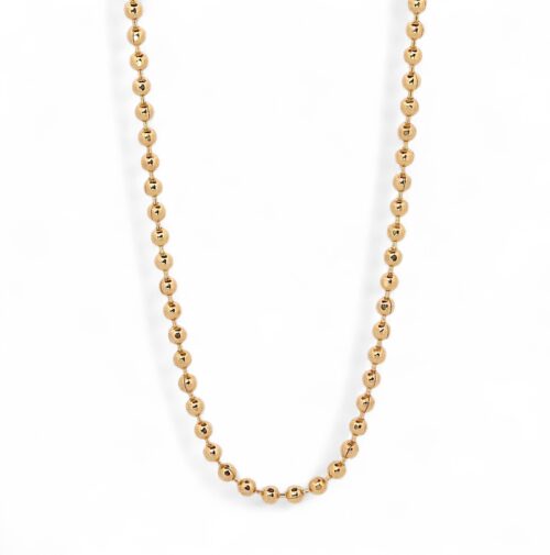 La maille marine ronde se distingue par son rythme régulier et sa structure solide, tout en conservant une fluidité agréable au porter. C’est une chaîne qui se suffit à elle-même, mais qui peut aussi se marier avec d’autres bijoux pour un jeu de superpositions tendance.
