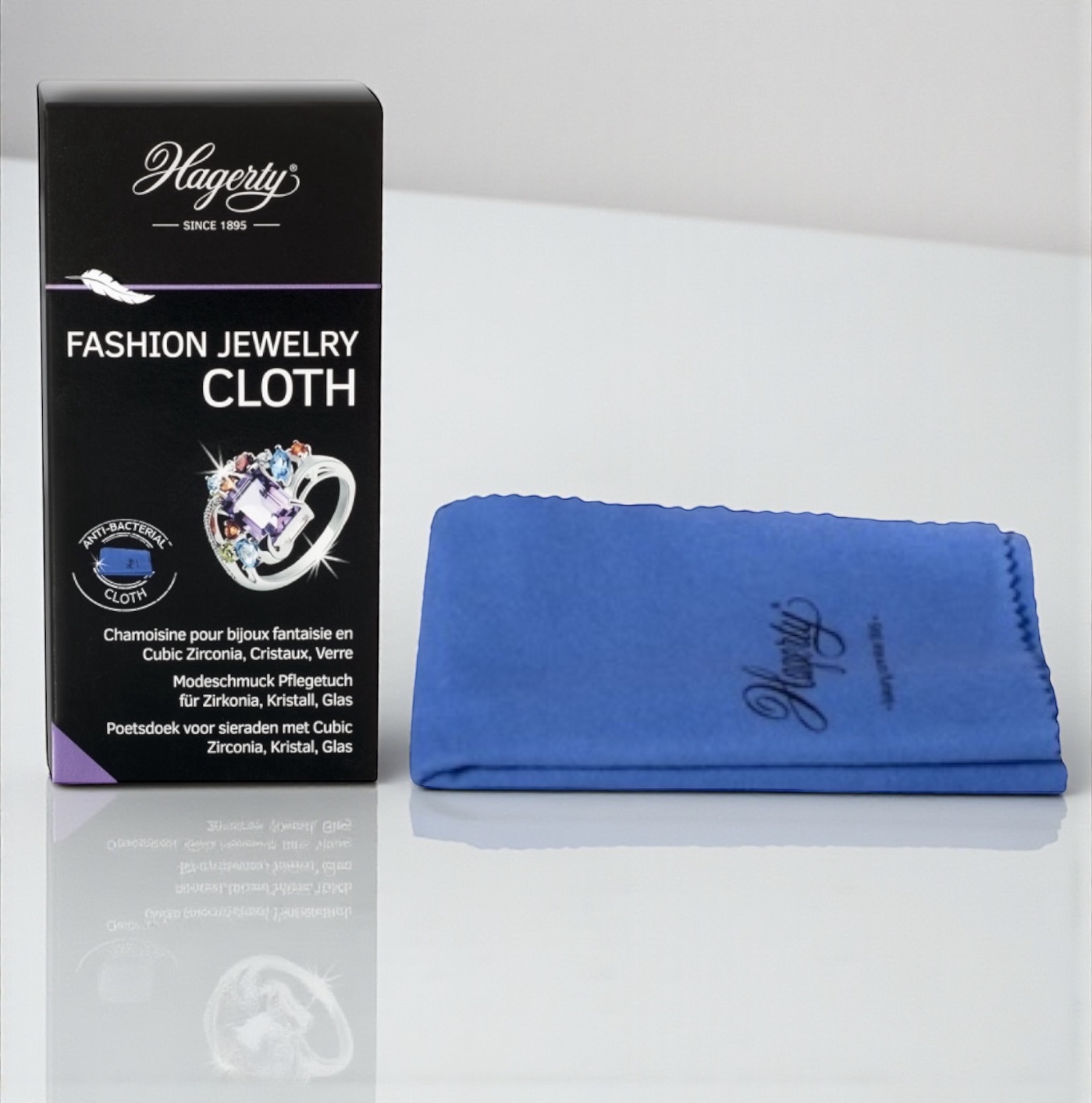 Spécialement conçu pour sublimer les bijoux ornés de zirconium, de cristal et de verre, le Fashion Jewelry Cloth nettoie et préserve l’éclat des bijoux fantaisie avec une infinie douceur.