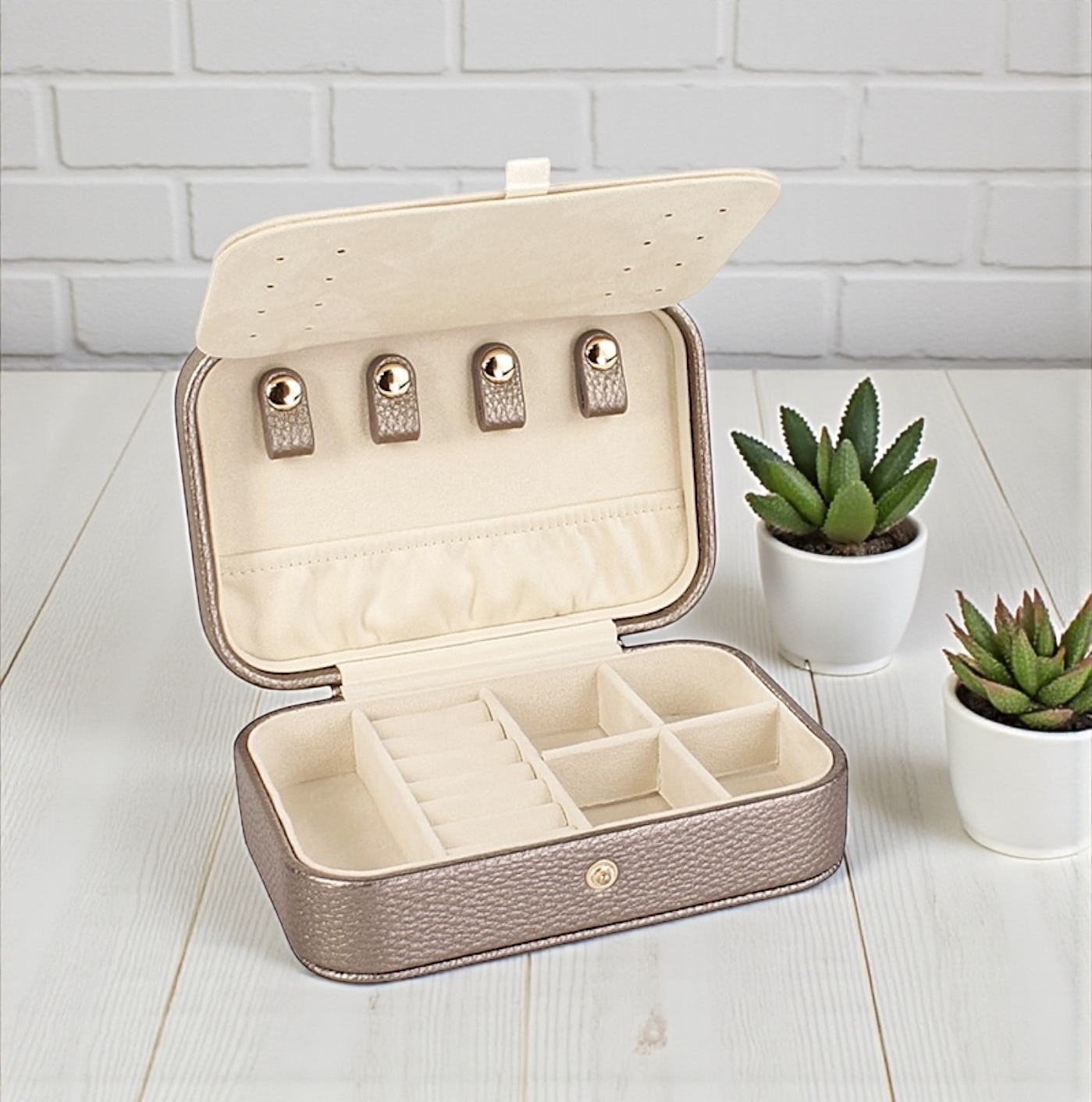 • Plusieurs compartiments de tailles différentes pour bracelets, pendentifs, broches ou petites pièces,