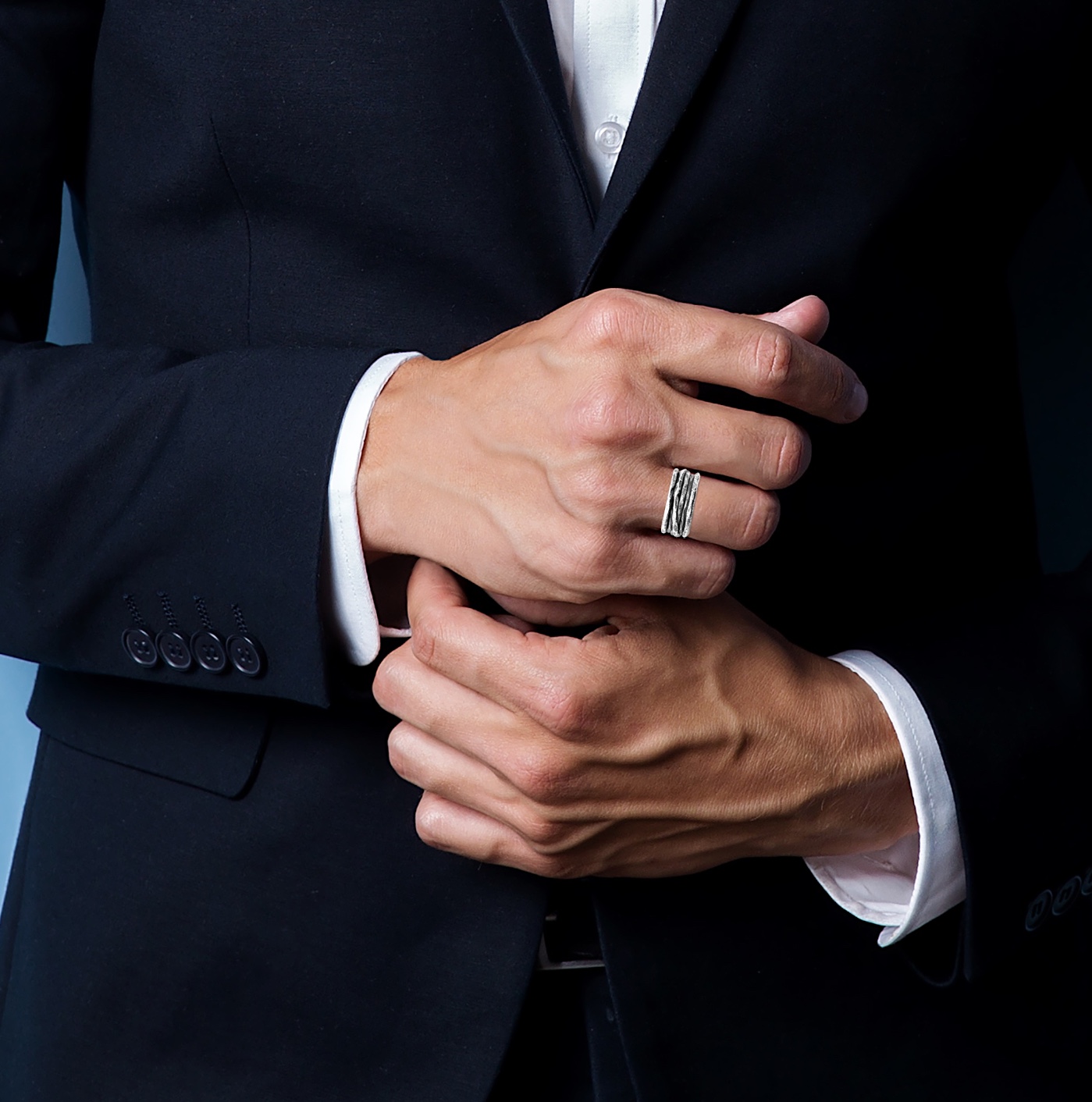 Affirmez votre style avec cette bague pour homme en argent véritable au design audacieux et texturé.