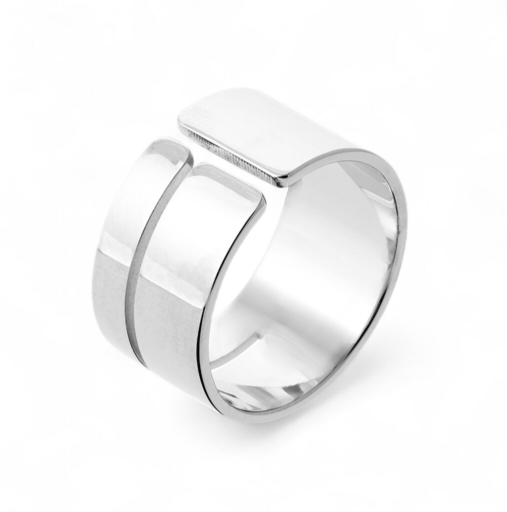 Chaque courbe est finement polie pour un rendu miroir éclatant, captant la lumière à chaque mouvement. Le placage rhodié offre à ce bijou une brillance durable tout en protégeant l’argent de l’oxydation naturelle, garantissant ainsi un éclat longue durée et une résistance remarquable au ternissement.