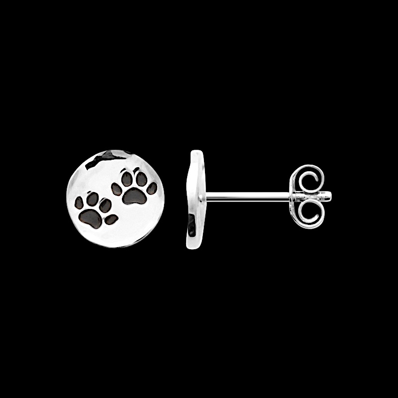 Ces adorables boucles d’oreilles en argent rhodié séduisent immédiatement par leur design tendre et expressif, dédié à tous les amoureux des chiens. Chaque boucle est ornée de plusieurs empreintes de pattes finement dessinées, mises en valeur par une laque noire éclatante qui souligne chaque détail avec précision et modernité.