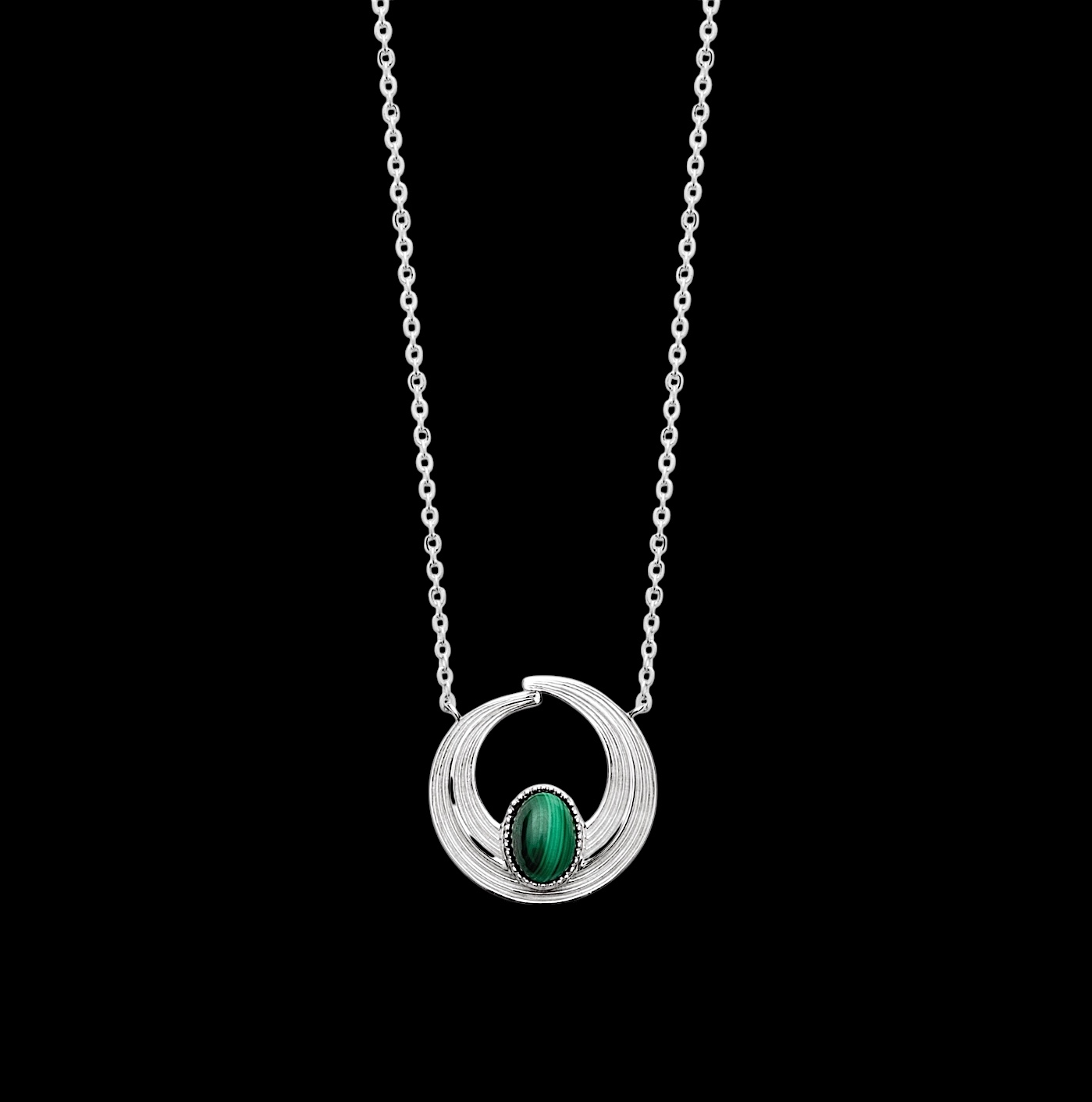 Collier “Aether” – Malachite – Argent rhodié
