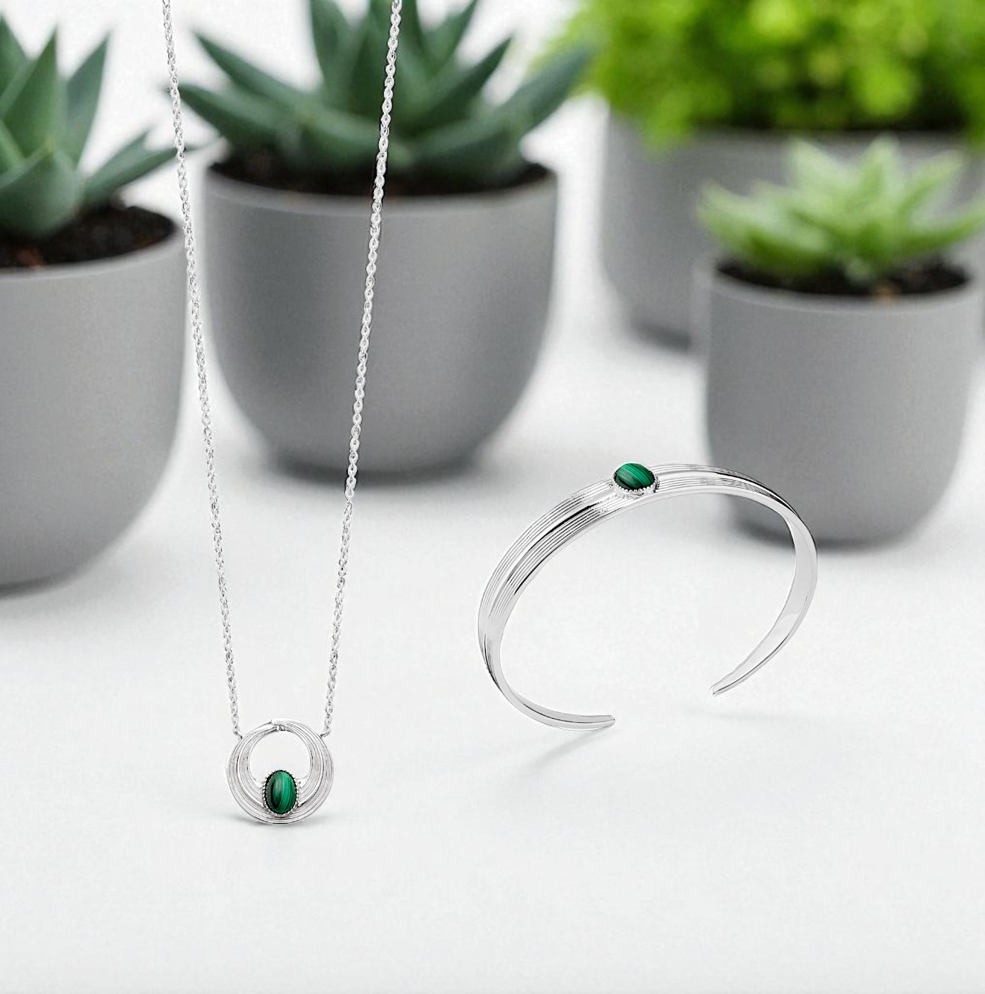 La qualité du rhodiage confère au bijou une brillance durable et une protection contre le temps, garantissant un éclat préservé au fil des années. Porter ce collier, c’est affirmer une personnalité raffinée et moderne, tout en profitant de la symbolique de la malachite, associée à l’harmonie et à la sérénité.