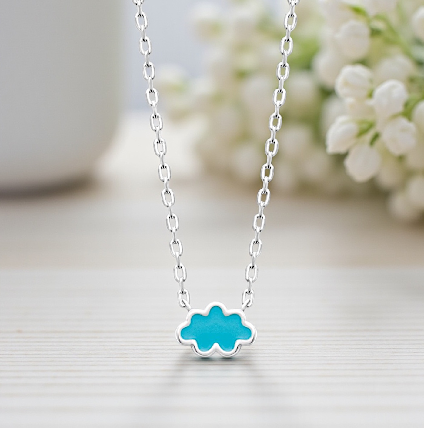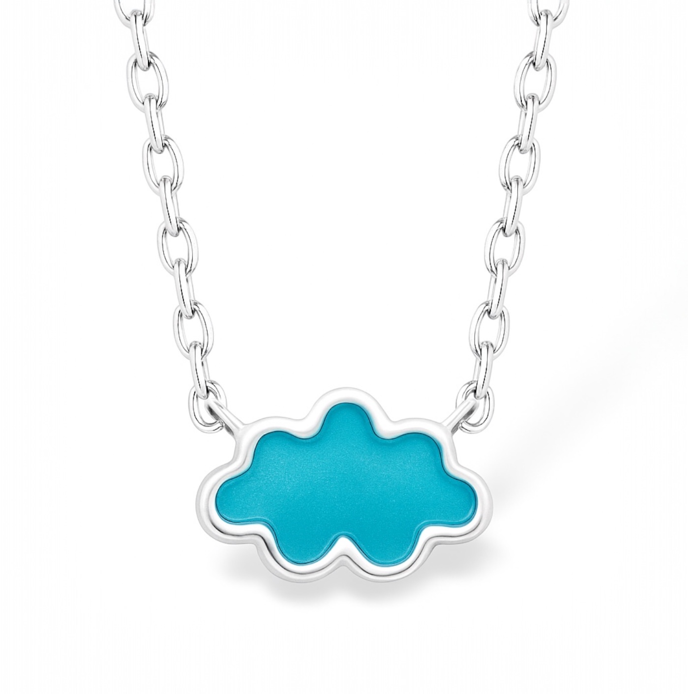 Ce délicat collier pour enfant en argent rhodié séduit par son charme tendre et sa douceur. En son centre, un petit pendentif en forme de nuage révèle une superbe laque bleu vif, lumineuse et joyeuse, évoquant le ciel, les rêves et l’innocence de l’enfance.