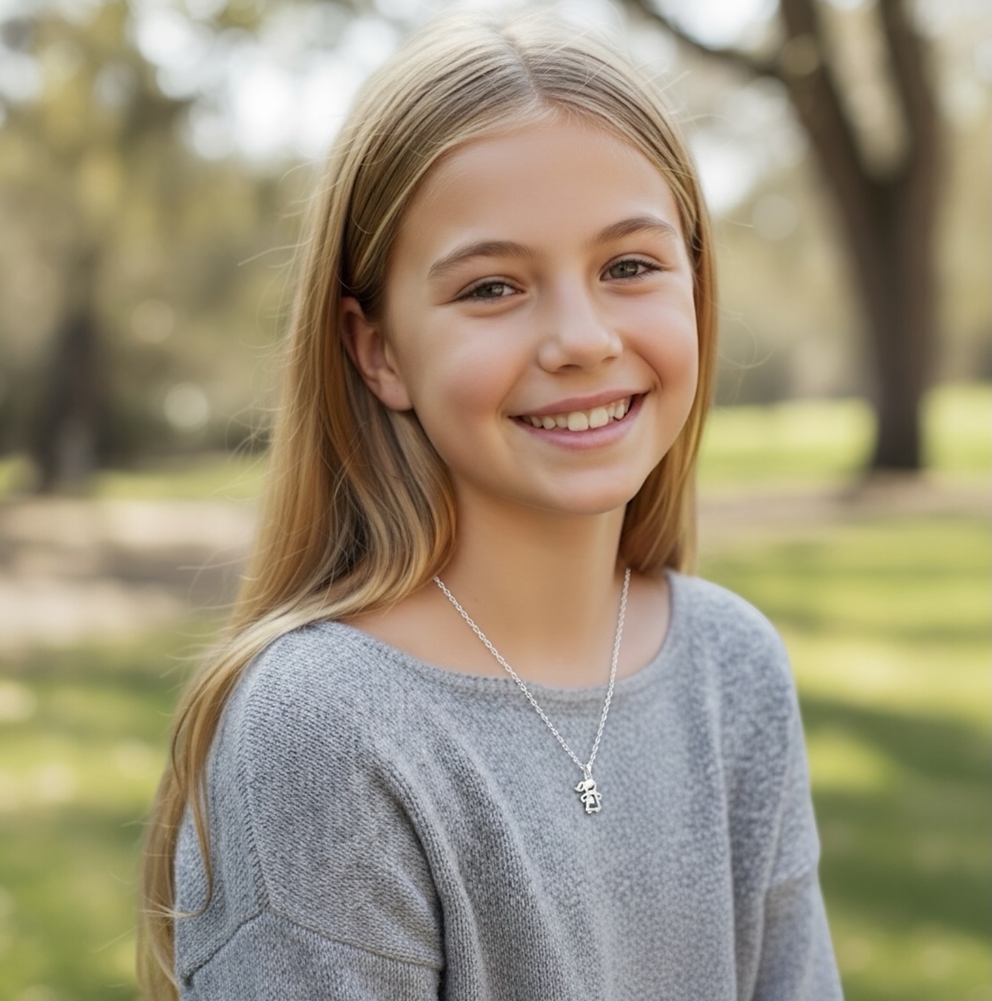 L’argent rhodié garantit une brillance durable et protège le bijou du ternissement, ce qui le rend idéal pour un usage quotidien. Léger et confortable, il se porte facilement, sans gêner, et accompagne l’enfant dans ses moments de jeu comme dans les grandes occasions.