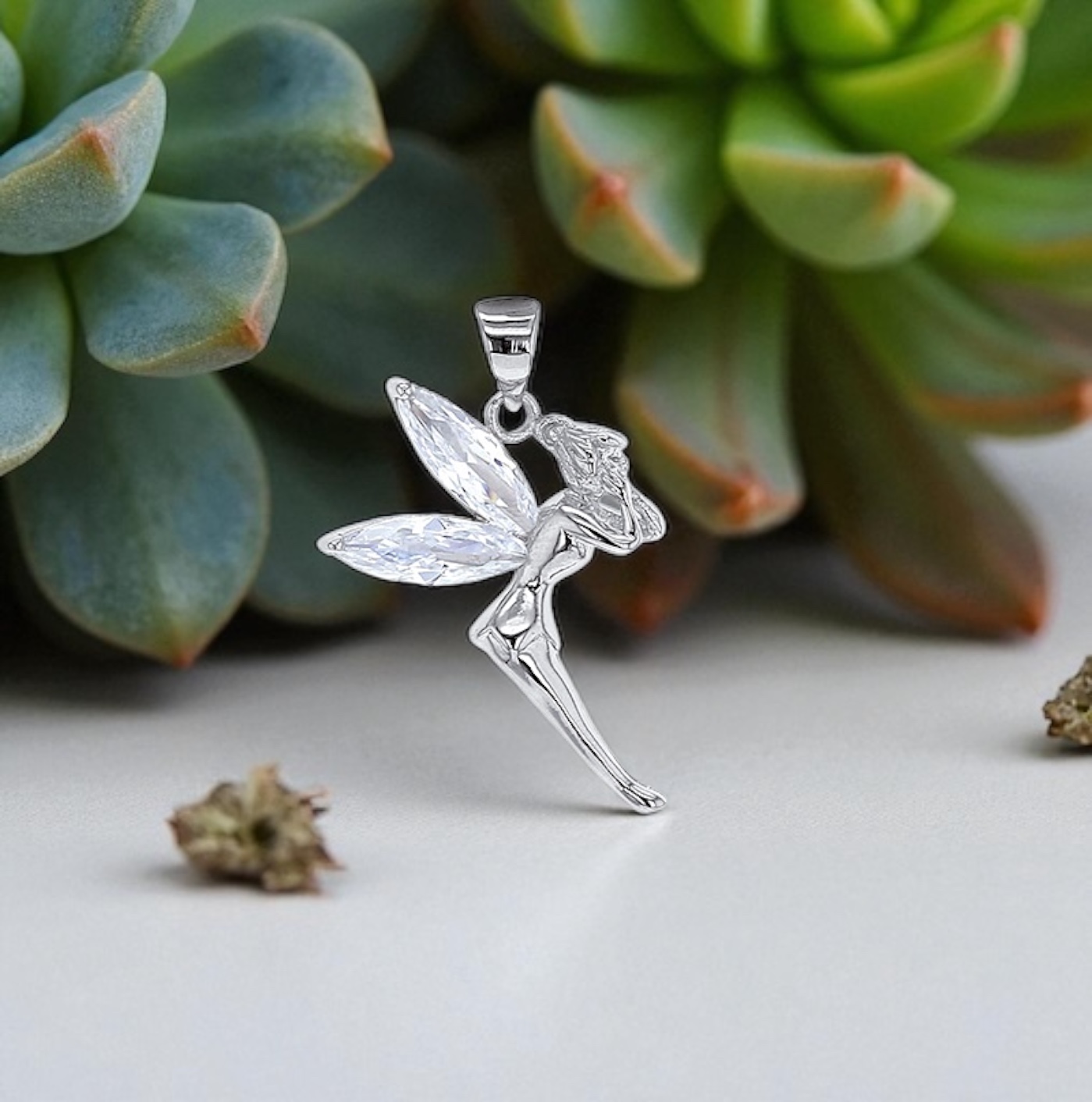Le corps de la fée, finement sculpté, semble prêt à s’envoler, porté par ses sublimes ailes étincelantes ornées d’oxydes de zirconium. Taillées en forme marquise, ces pierres captent la lumière avec élégance, apportant éclat et légèreté à l’ensemble.