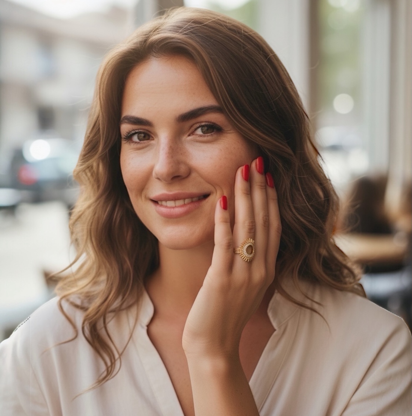 Cette bague incarne la féminité éclatante et la confiance en soi. Elle attire le regard par son design audacieux tout en restant d’une finesse exquise. Elle se porte seule pour révéler toute sa puissance visuelle ou associée à d’autres bijoux dorés pour un effet encore plus lumineux.
