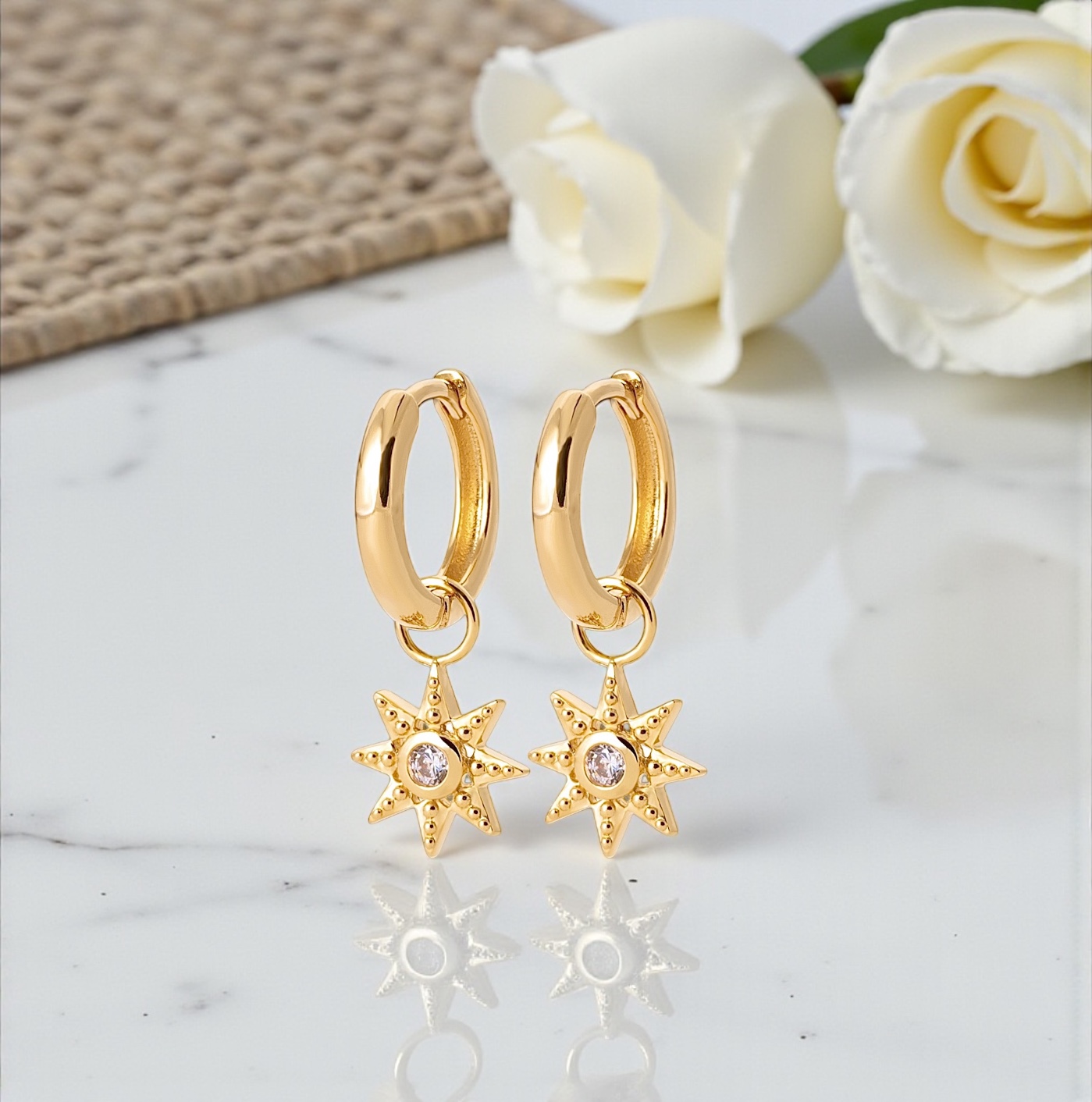 Boucles d'oreilles "Astéria" - Oxydes de zirconium - Plaqué or