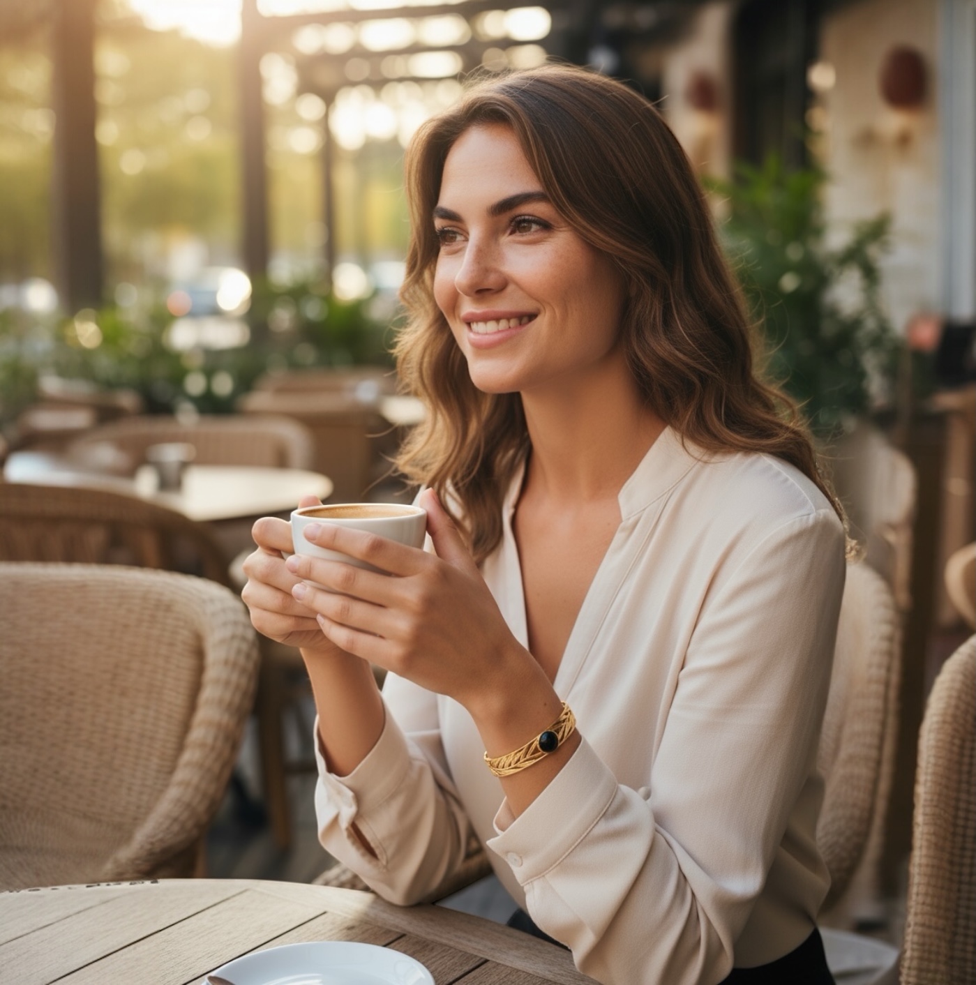 Avec ses 58 mm, ce jonc impose une présence raffinée au poignet, incarnant un équilibre parfait entre design moderne et inspiration naturelle. Chaque détail est pensé pour capturer la lumière et sublimer votre style, faisant de ce bijou une pièce incontournable.