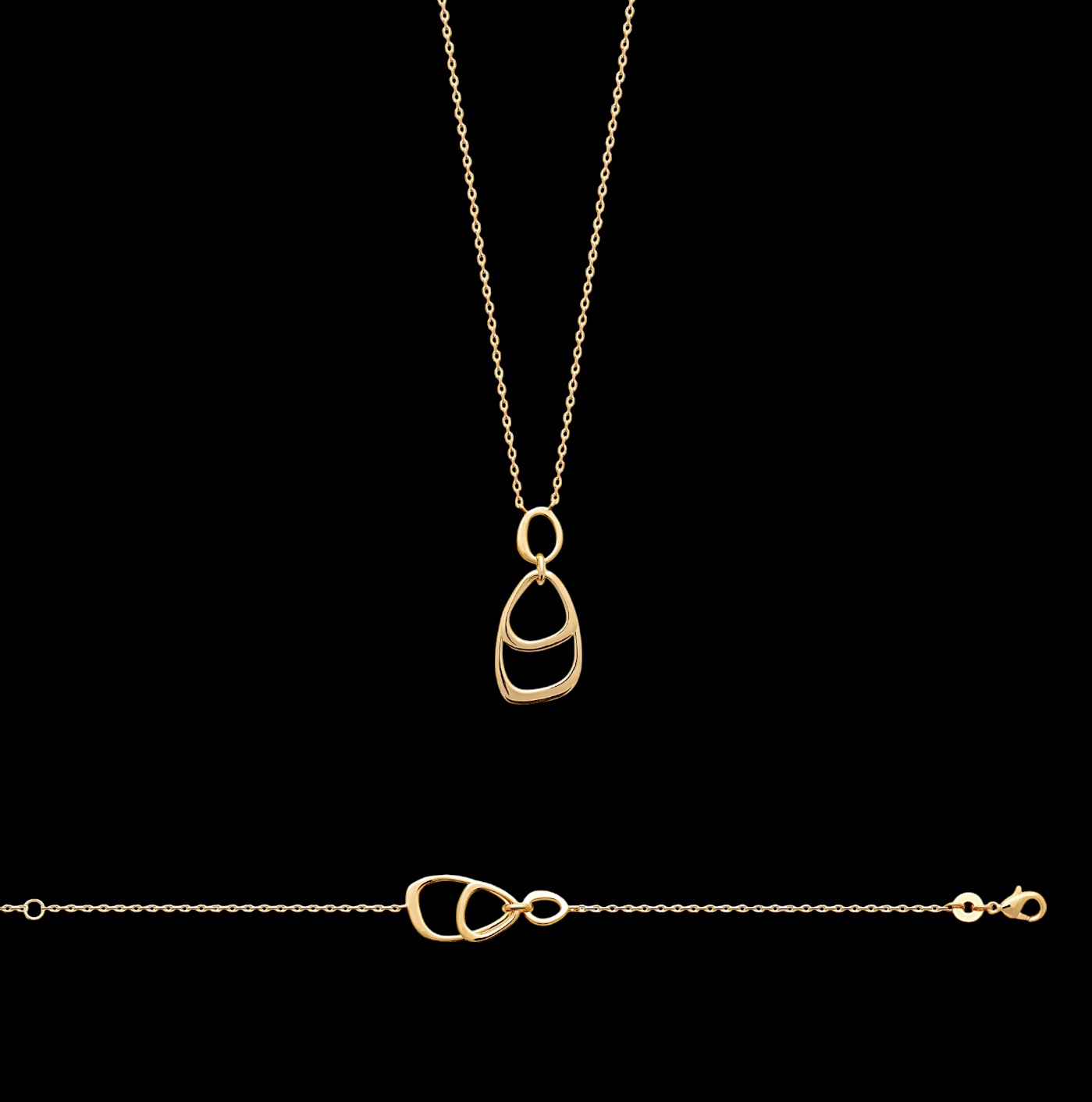 Ce bracelet plaqué or 18 carats séduit par son design moderne et délicat, composé de trois anneaux aux formes organiques, légèrement irrégulières, qui partent d’un même point d’attache, offrant un jeu de volumes subtil et élégant. La finesse de la chaîne met en valeur ces anneaux qui captent la lumière avec élégance. Avec ses 18 cm, ce bracelet s’ajuste parfaitement au poignet.
