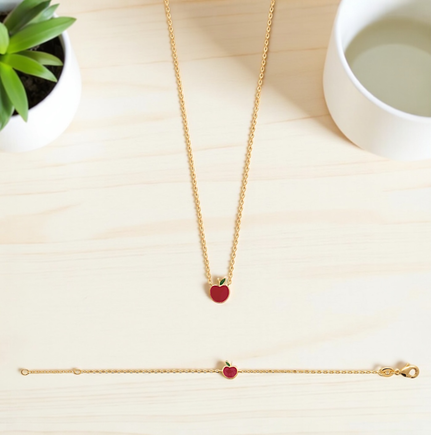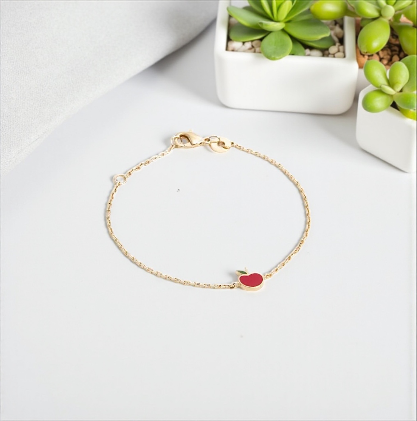 Bracelet pomme – Laqué rouge – Plaqué or