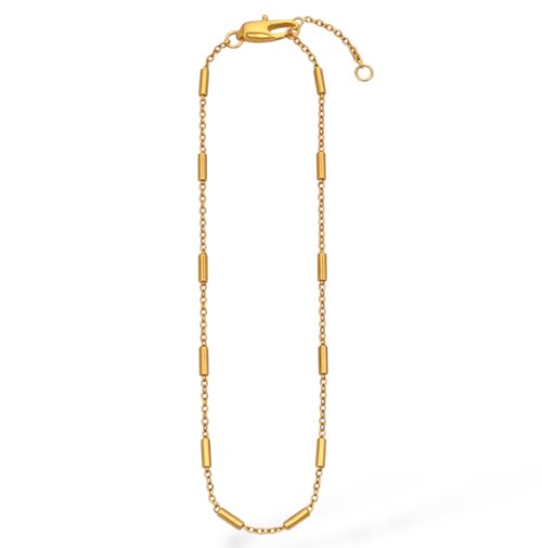Cette chaîne, légère et élégante, s’ajuste parfaitement autour du cou, offrant un confort optimal tout en ajoutant une touche de brillance. Son plaquage en or 18 carats apporte un éclat chaleureux et lumineux qui ne manquera pas d’attirer l’attention.