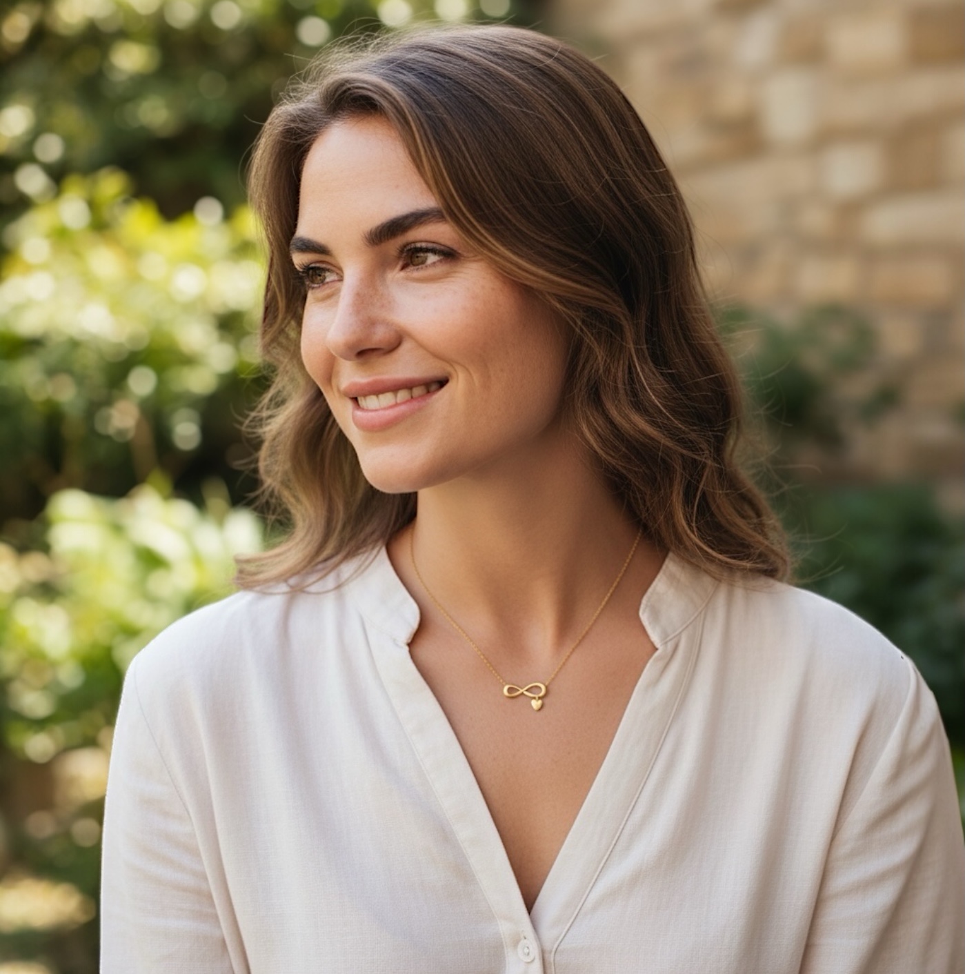 L’infini symbolise l’éternité, la continuité et l’intemporalité, tandis que le cœur évoque la tendresse et la passion. Ensemble, ils forment un bijou puissant qui exprime un amour XXL, inépuisable et inconditionnel. Porter ce collier, c’est afficher ses sentiments avec élégance, c’est célébrer les liens indestructibles qui unissent et affirmer que certaines émotions ne connaissent pas de fin.