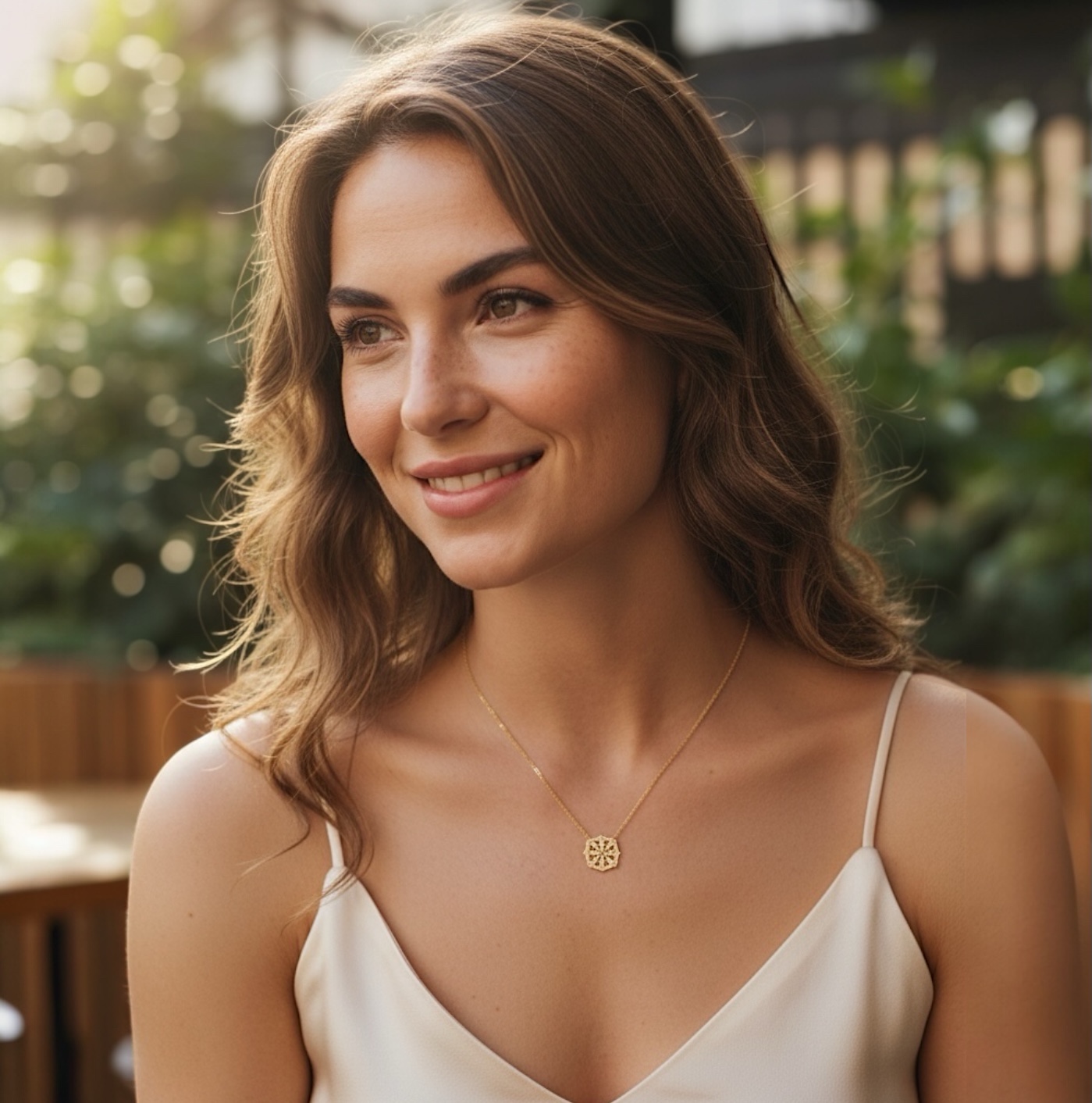 La monture, à la fois ajourée et finement ciselée, joue avec la lumière et crée des reflets d’une grande finesse. Ce travail de texture donne de la profondeur au bijou et met en valeur la beauté de l’or. Le pendentif se suspend avec élégance à une chaîne fine et éclatante de 45 cm, qui met idéalement en avant son design central sans jamais l’alourdir.