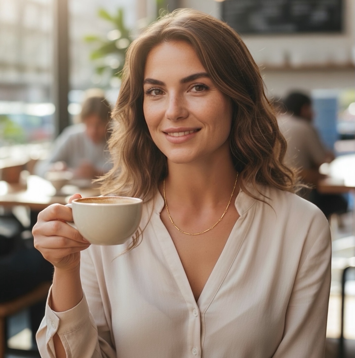 Affirmez votre style avec ce collier moderne et raffiné en plaqué or 18 carats, au design épuré et graphique.