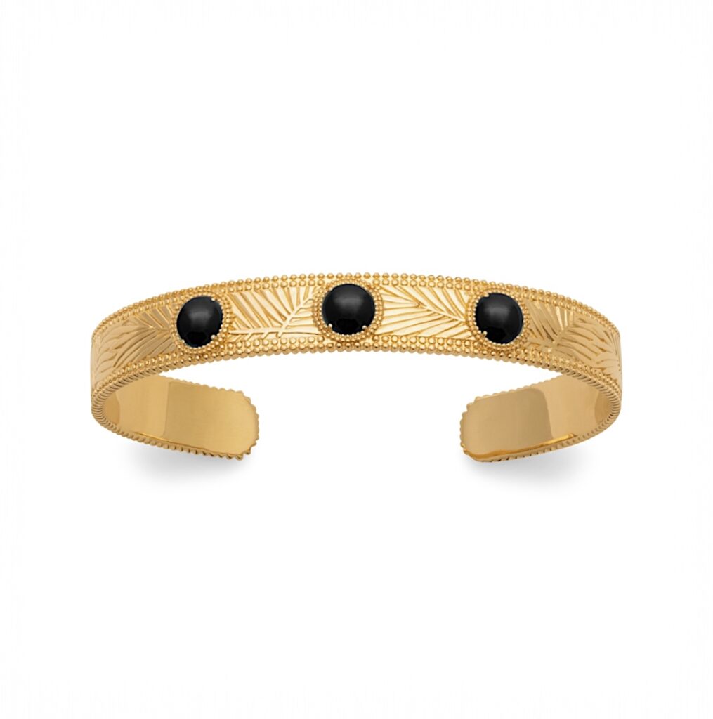 Bracelet jonc "Mystique" – Agate noire – Plaqué or