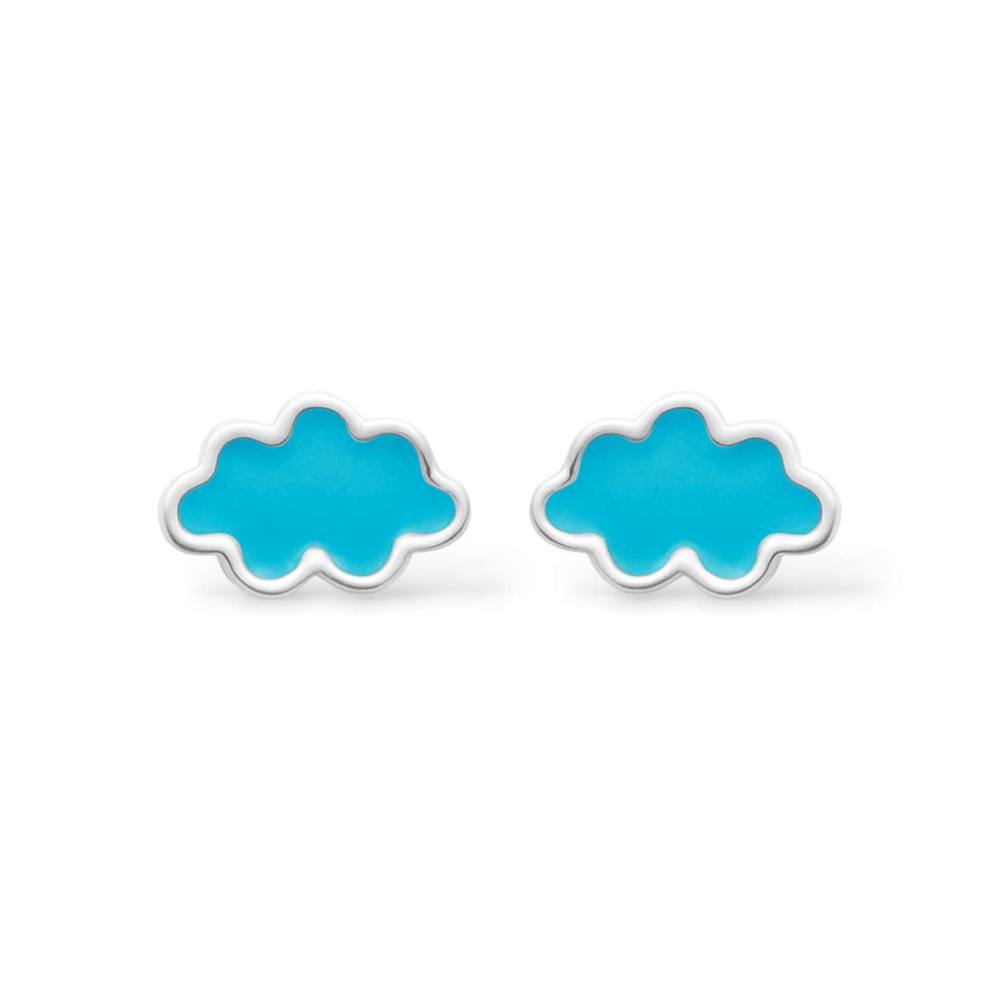 • Boucles d’oreilles “Nuage” – Laque bleue– Argent rhodié